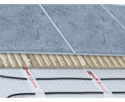 Under tiles floor heating is applied regulary on renovation process, or in any situation when itţs impossible to increase the floor layes. Floor heating is an only 3 mm thickness heating cable fixed on a glass fibre mesh, which will be applied in the tile adhesive or in the self-levelling compound.